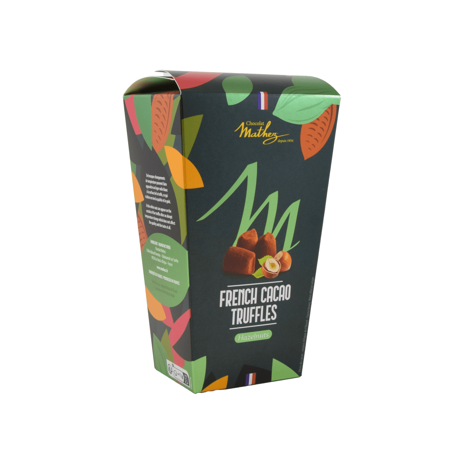 Trufele Mathez sunt o plăcere mereu reînnoită. Un adevărat cadou gourmet, care știe să încânte un număr mare de persoane prin textura lor fondantă inconfundabilă și gustul intens de cacao si bucăți de alune de pădure.